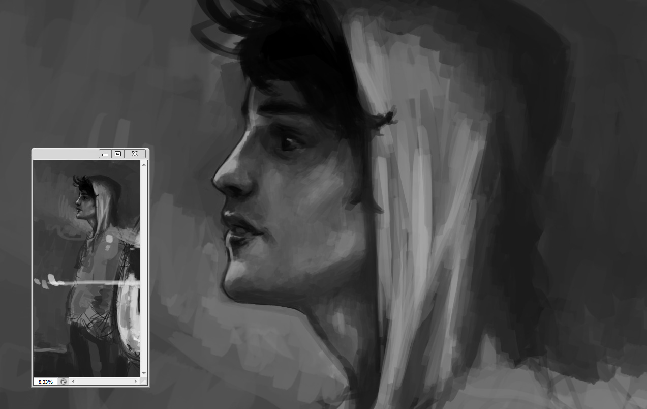Momentan wieder viel zu tun, daher wenig Forenaktivität und noch weniger Output - es ist zum auswachsen!!! Zur Erbauung, Verwirrung und Erquickung, oder als Lebenszeichen - hier (mal wieder!) - Ein Skribbel und das Work-in-Progress, das daraus entstanden ist. Technik ist ähnlich wie bei dem Fischbild, oder bei dem Jungen auf der Sichel. Ich dachte nur, ich hänge hier mal mit dabei, aus welchen krudem Gekritzel sowas dann entsteht ... falls sich jemanden für so etwas interessiert :D