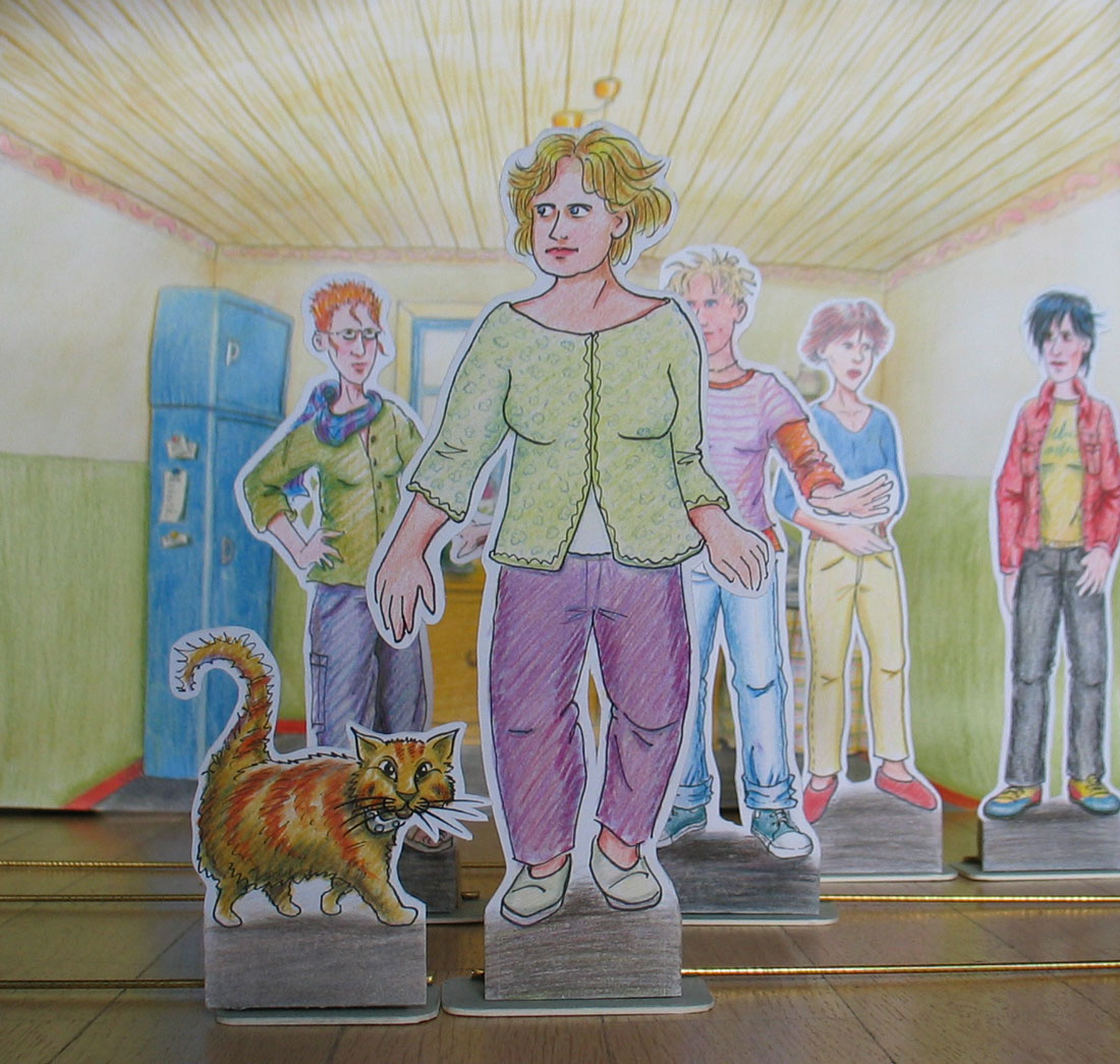 Vielleicht zeige ich hier demnächst mal Figuren und Kulissen eines Stücks, das leider noch nicht existiert, weil die erste fertige Szene bei einer Lesung im kleinsten Kreis so was von durchgefallen ist, dass ich alles samt und sonders schamvoll in einer Kiste versenkt habe, die ich seitdem nicht wieder ausgepackt habe, was, glaube ich, ein bisschen übertrieben ist. :)