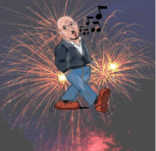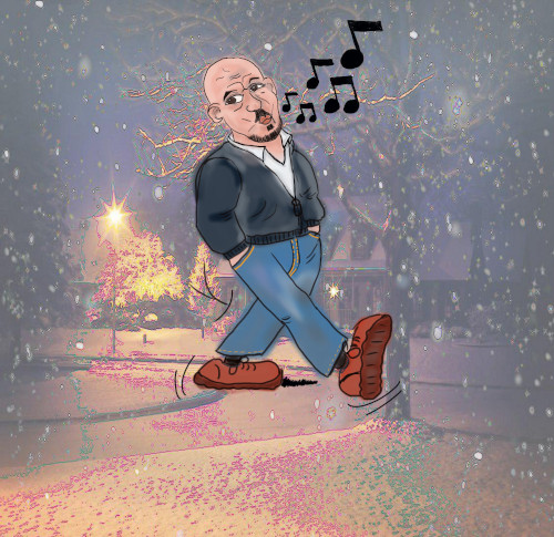Der gezeichnete fröhlich Pfeifende Mensch ist der Zeichner.
