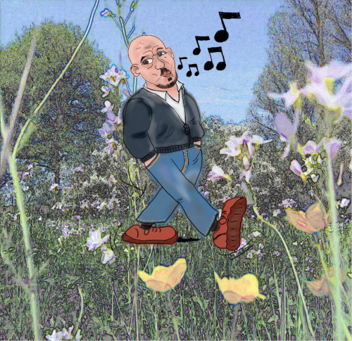 Der gezeichnete fröhlich Pfeifende Mensch ist der Zeichner.