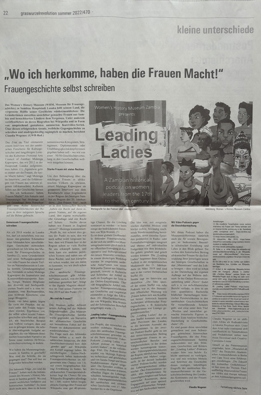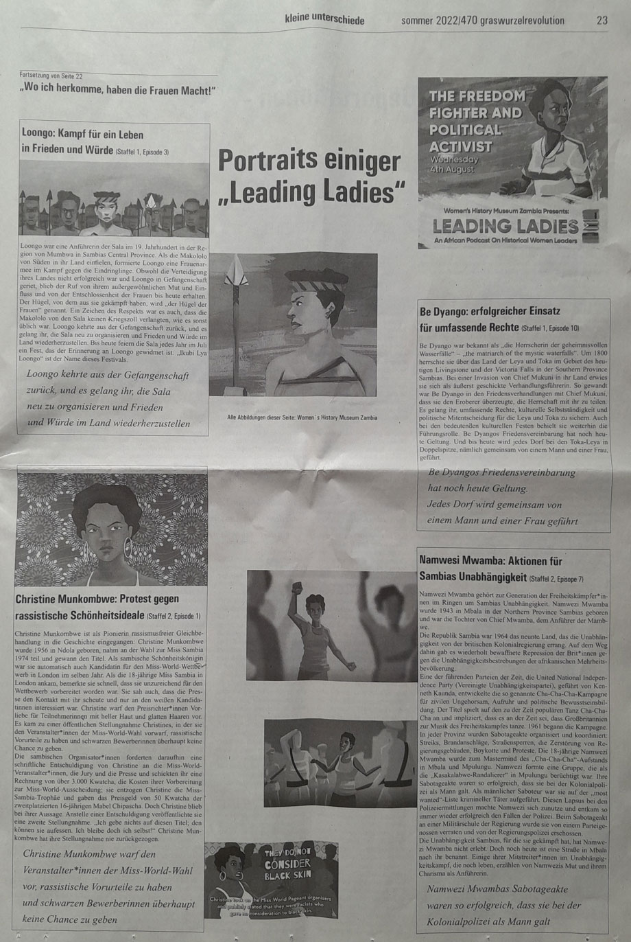Schlicht wirken sie, und auf den Punkt sind die kleinen Zeichentrickfilme der Reihe "Leading Ladies" des Women's History Museums Sambia: https://www.whmzambia.org/leading-ladies-podcast-launch