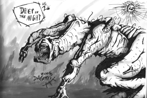 Ich habe auch noch ganz viele düstere Zeichnungen, da hat mir mal mein damaliger Phylosophie-Lehrer gesagt, Massenmörder hätten in der Todeszelle ähnliche Sachen gezeichnet… :D