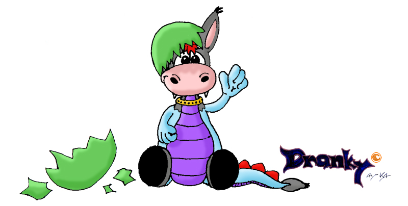 :O Also Dranky ist aus einer Uneinigkeit bei der Schülerzeitung meiner Schule entstanden, das heißt mein Klassenkamerad wollte einen Esel und ich wollte einen Drachen als Maskotchen für die Schülerzeitung, also habe ich halt einen mix gezeichnet damit beide zufrieden sind. Und so ist Dranky (der leider bei der Schülerzeitung NIKI heißt) entstanden!