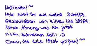 Ich würd mal gerne wissen wie eure Handschrift aussieht, nur aus neugier. Also schreibt etwas, ein Satz reicht, scannt es, und postet es hier!