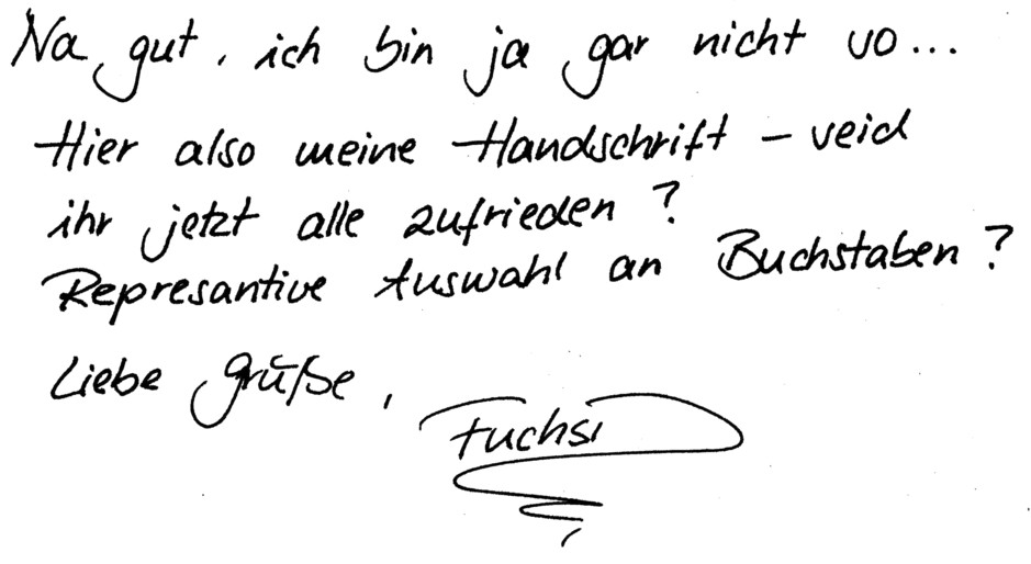 Na gut, hier also eine Schriftprobe, ich bin ja gar nicht so.
