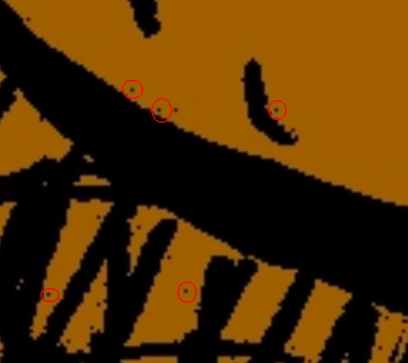 Was die freischwebenden Punkte angeht: das kann zum Beispiel die Papierstruktur sein, winzige Staubkörnchen auf dem Scanner oder Ähnliches. Wenn diese Punkte zu extrem sein sollten (mit bloßem Auge ohne Vergrößerung erkennbar), kann man sie immer noch mit dem Radierer-Tool entfernen.