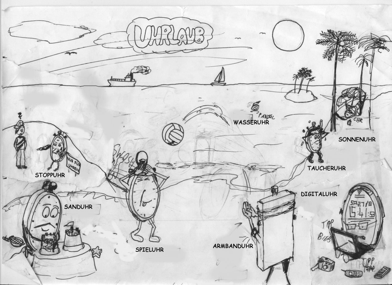 im urlaub hab ich mit einem cartoonkalender begonnen, das heisst für jeden monat einen cartoon! das kann ich dann als universal-weihnachtsgeschenk verwenden, da man das blatt nur noch auszudrucken und zu kolorieren braucht (wir haben keinen farbdrucker)!
