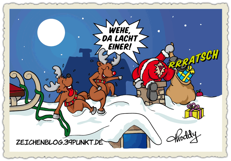 Stichwort Weihnachten also: Was gibts da zu lachen? Zeichnet einen schönen Weihnachtscartoon!