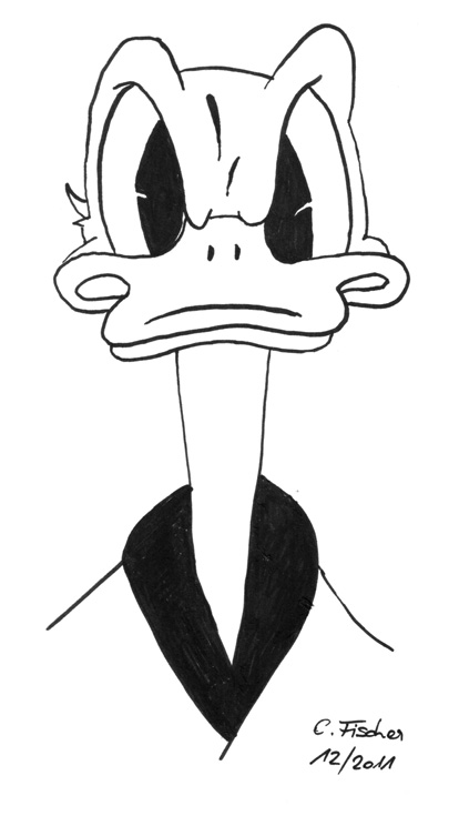 1) Donald sauer (dabei habe ich zuweit oben auf dem Papier angefangen zu zeichnen, darum ohne Mütze) :whistling: