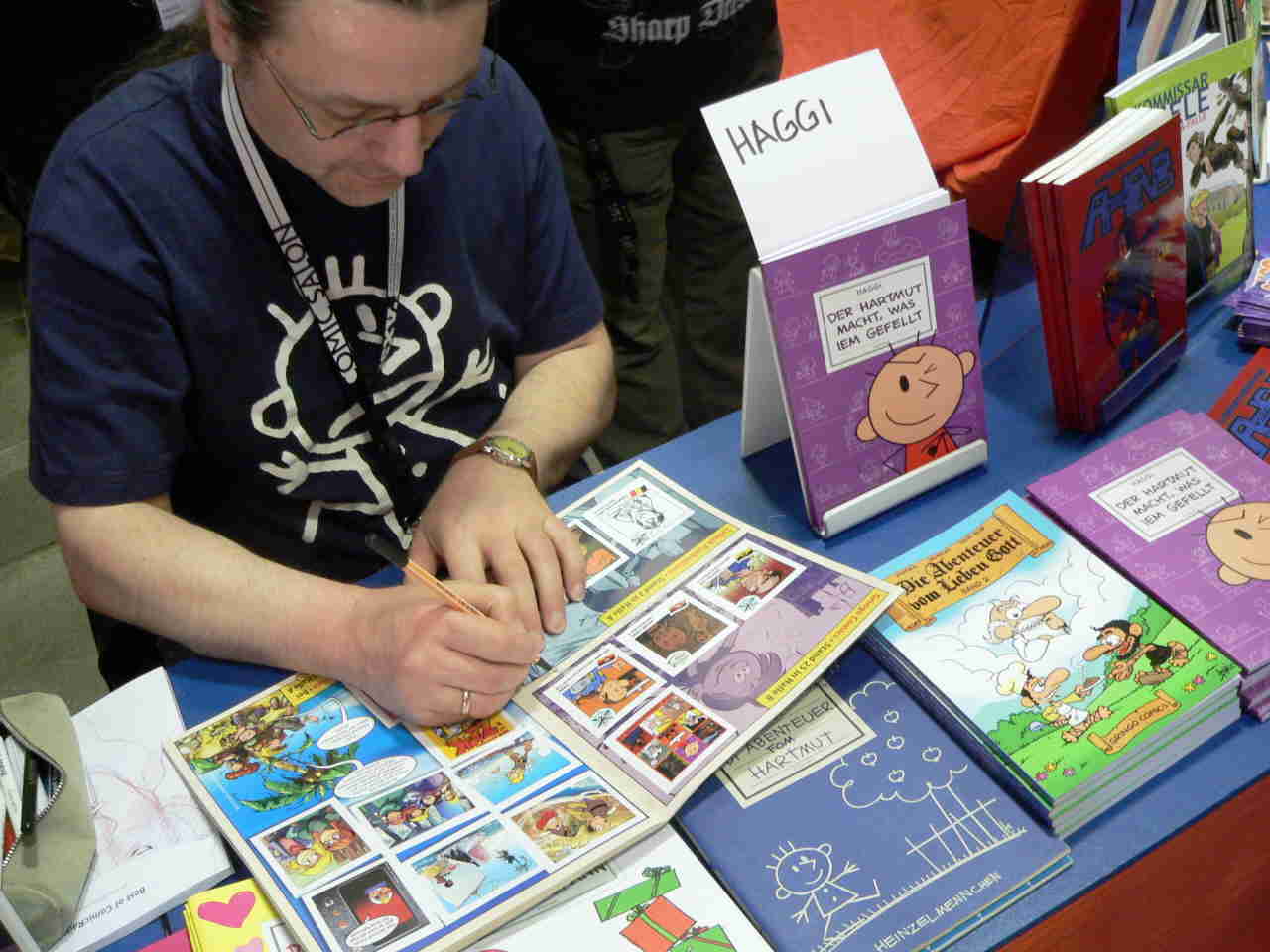 Viele Fans bringen eigene Signierbücher mit, in denen sie nach und nach Zeichnungen von namhaften Künstlern sammeln. Bei vielen von ihnen müssen sie Stunden lang anstehen, bis sie ihre Signatur ergattert haben.