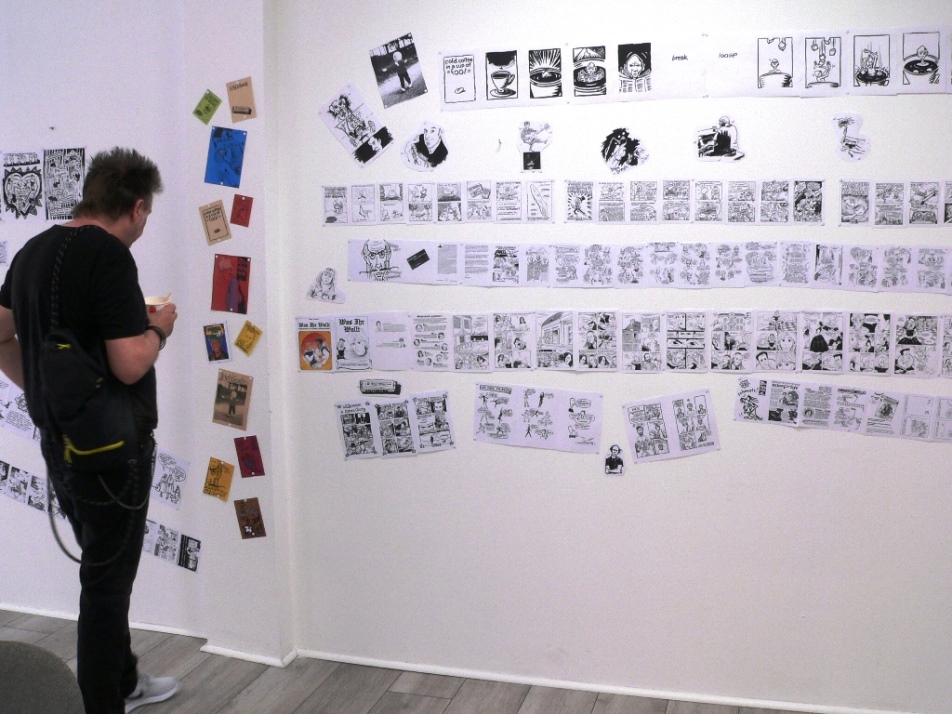 War ein sehr schöner Eröffnungstag. Andreas sitzt jetzt noch im Zug nach Hause. Christina und ich radeln gleich zum Ausstellungsraum. Ob heute Besucher auftauchen werden? Wir werden uns die Zeit vielleicht mit Mini-Zines-Falten vertreiben. :)