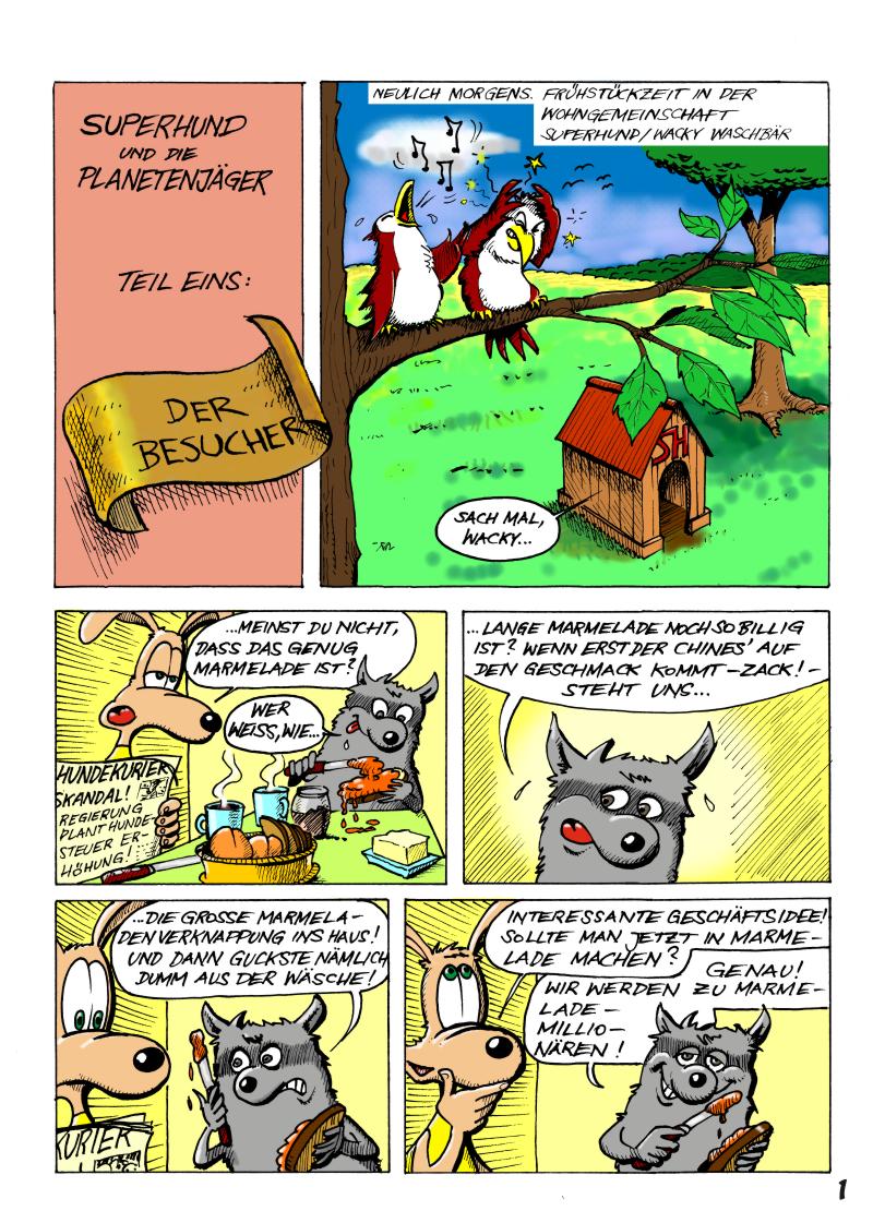 Das dem Leser mitzuteilen wäre doch auch eine eigene Folge wert (wobei dein Hund aufpassen sollte - dieser suspekte Waschbär, mit dem er sich umgibt, könnte es auf die Kohle abgesehen haben...ich weiß, ich weiß - ich vorverurteile ihn, aber wer stets eine Maske trägt, muss mit so etwas rechnen).