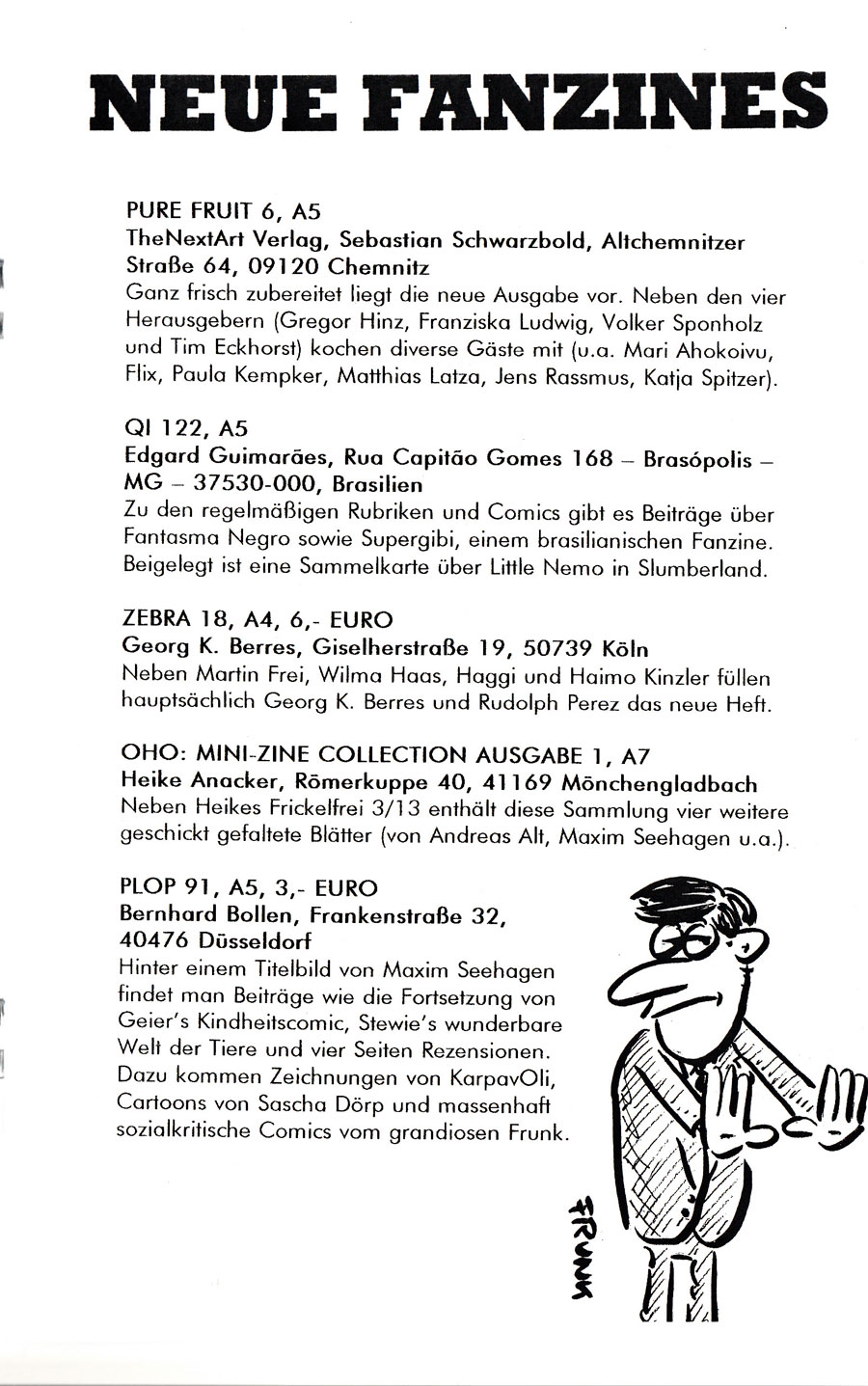 Im brandheißen PLOP!!!!!!!!! findet sich auch eine kurze Besprechung. Bernhard Bollen schreibt u.a. zu oho!: