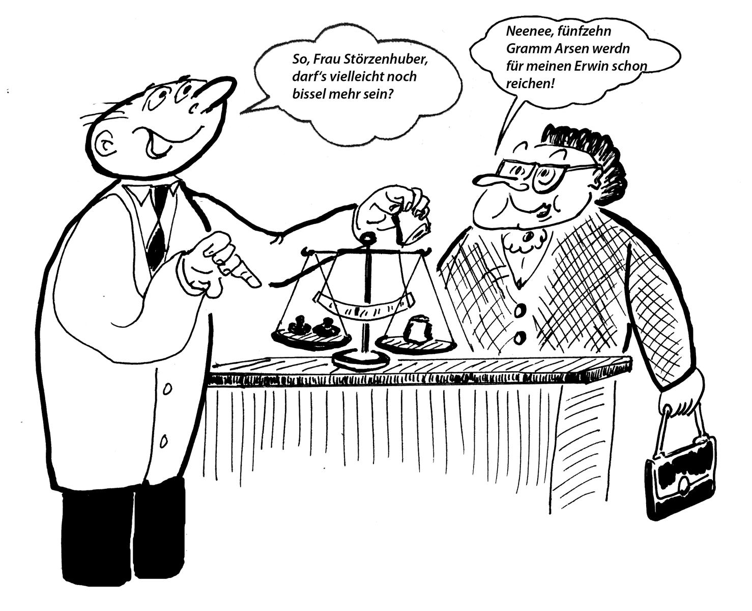 Ein Apotheker fragt eigentlich nicht: "Darf's etwas mehr sein?" Und er müßte eigentlich am besten wissen, welche Arsen-Dosis tödlich ist. Ein Normalbürger weiß das dagegen nicht (ich jedenfalls habe keine Ahnung...).