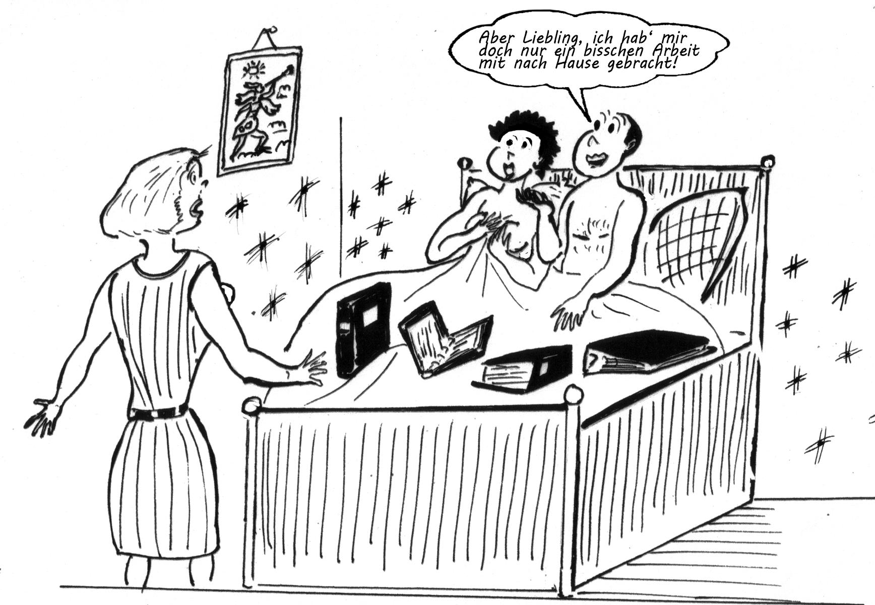 Ich finde, es wäre ein Herrenwitz, wenn er etwas besser funktionieren würde. Dafür müßte man aber die Ausrede "Arbeit" mit der Frau im Bett etwas besser verknüpfen als bloß durch die mitgebrachten Akten.