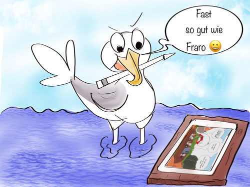 Das ist nicht Gordon, und ich bin nicht sicher, ob das überhaupt als Möwe durchgeht (aber vielleicht hast Du als Schweizerin noch nie eine Möwe gesehen).
