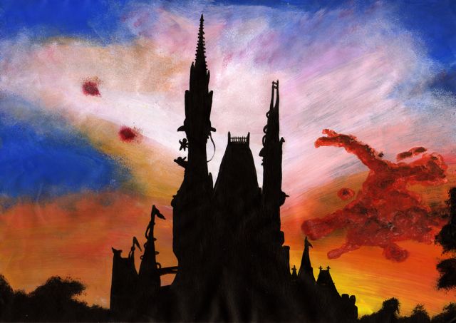 Die Wolken sind ganz scheußlich geworden... Sieht bisschen wie Ketchup aus.