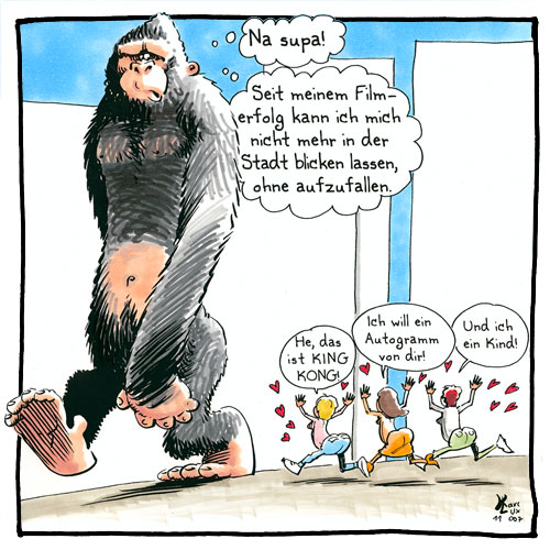 Wieder einmal ganz großes Kino, Karl! Der King-Kong-Stalker-Toon ist echt hinreißend gut! Wie im Übrigen auch die Tennis-Toons! Klasse! :D