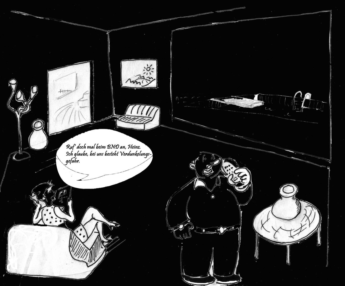 Sowohl bei Tag als auch bei Nacht wäre der Raum ziemlich hell. Ich hätte einfach Rolläden drüber gezeichnet oder das Fenster komplett "vernichtet". (Vllt. habe ich das Cartoon aber auch falsch verstanden)