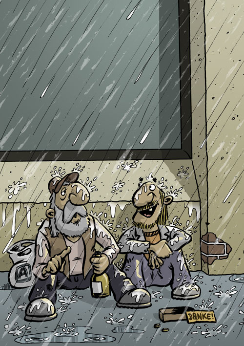 "EY MANN, BLEIB TROCKEN ALTER!"