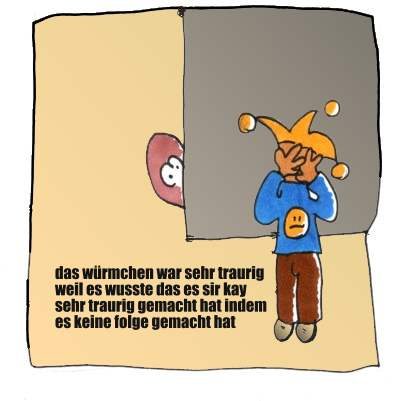 aber kannst du nicht mal ein frühliches Würmchen machen? das tut mir so leid.. (der Titel "Das traurige Würmchen" würde zwar nichtmehr passen, aber egal..)