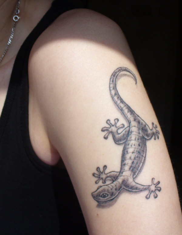 ich hab einen gecko auf dem arm! und der uli, der es gestochen hat, hat ihn noch viiiiel hübscher hingekriegt als meine krakelige skizze... :love: