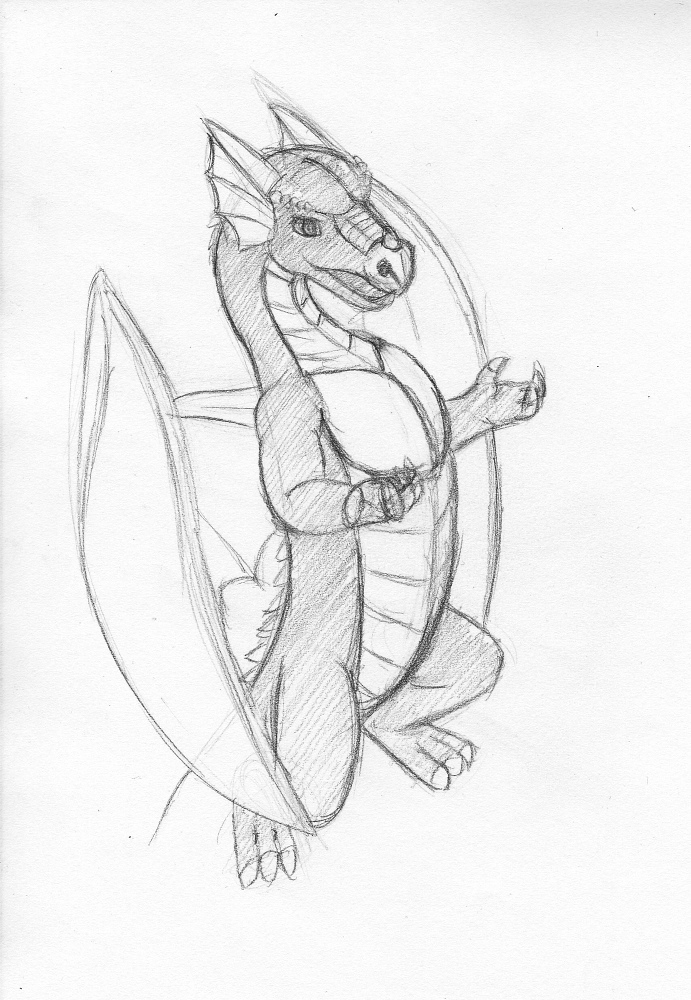 Ich finde, Du entwickelst Dich in letzter Zeit echt weiter. Vor allem Dein Drachen gefällt mir aschon sehr gut, nur mit dem Flügelansatz steuerbords bin ich noch nicht 100% einverstanden. Da werde ich noch nicht schlau draus. Das würde sich wahrscheinlich bei einer reinzeichznung (und mit Farbe) ändern.