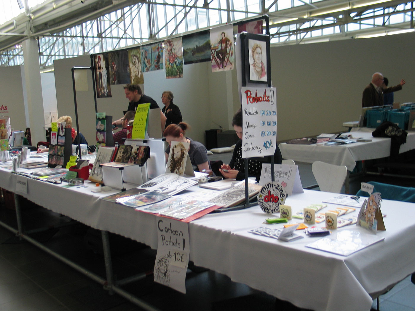 Gern geschehen. Hat mir sehr gefallen dort, meiner Freundin übrigens auch. Auf Einhaltung der Regeln aus den Geschäftsbedingungen (kein Verzehr von Essen + Getränken im Messebereich; maximal 3 Objekte plus Zeichenblock auf einem Künstlertisch; nur ein Stuhl pro Tisch etc.) wurde meinem Eindruck nach überhaupt nicht gepocht. Das zahlreich vorhandene Aufsichtspersonal des Ludwig Forums war einfach nur freundlich und hilfsbereit (auch das oben erwähnte etwas skurrilere Exemplar), die Organisatoren waren es trotz offensichtlichem Stress ebenso. Ich hoffe, deren Bilanz der Veranstaltung fällt positiv aus und es geht weiter mit der COMICIADE.