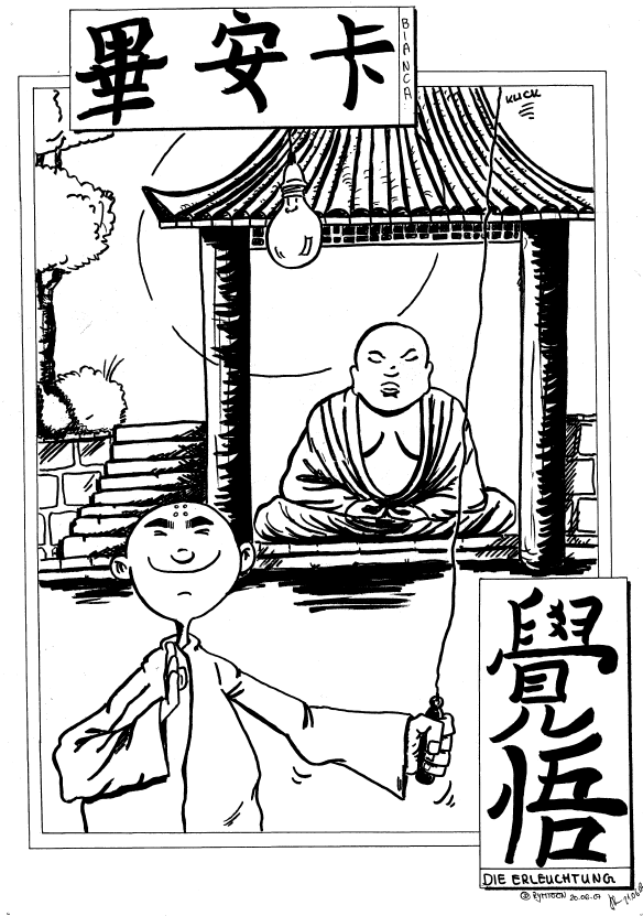 yep, der Mönch schaltet die Lampe ein, um die Erleuchtung zubekommen.