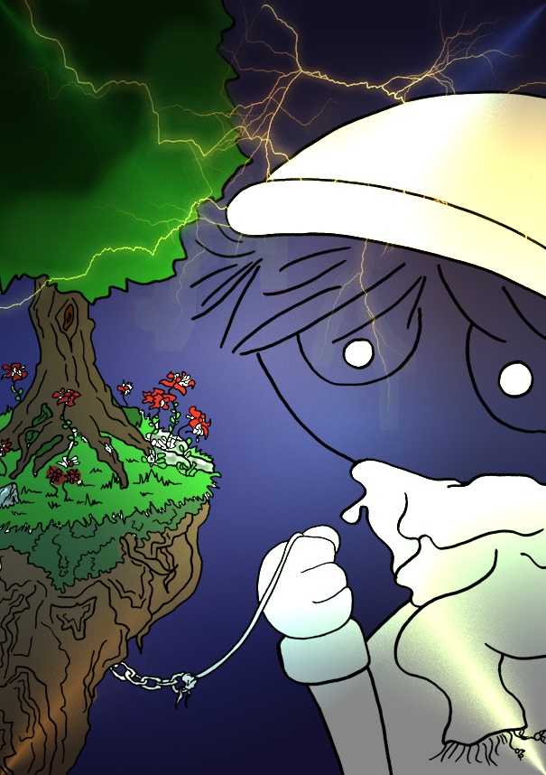 Mein Grundgedanke hinter dem Bild war einfach der, dass es die Insel und eine Welt wie die Insel einfach nicht gibt. Wo schweben bitteschön Inseln?