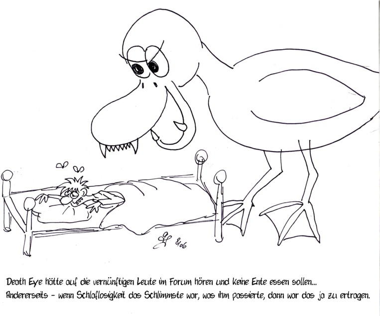 Hört jetz endlich auf von Ente zu reden, ich hör schon nix mehr vor lauter Magengrummeln :D Die Suppe vorhin war einfach zu wenig...