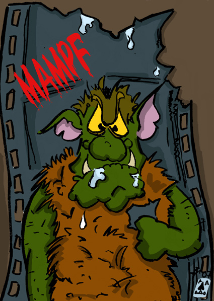 Ich entwickle mich immer weiter,die monsterz au ;) Zu den Farben:Viele farben lassen das auge nicht einschlafen,ist sehr hilfreich,aber da gilt auch weniger ist mehr.hab 2 stunden im Ps gebraucht,davor noch skizze mit dem bleistift angefertigt und eingescannt,alles zusammen um 3,5-4 st.