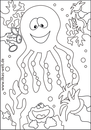 Bei dem Meermalbild soll das "Tierchen" unter der Krake oder dem Tintenfisch eine Muschel sein. =)