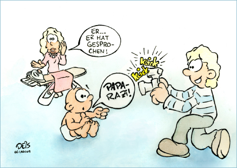 Geiler Gag! Super gezeichnet! Ich hoffe, Du kriegst das mit dem Schlagschatten hin, denn der ist wichtig, damit man gut erkennt, dass der Vater hockt und nicht läuft.