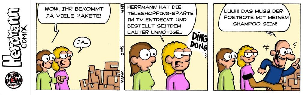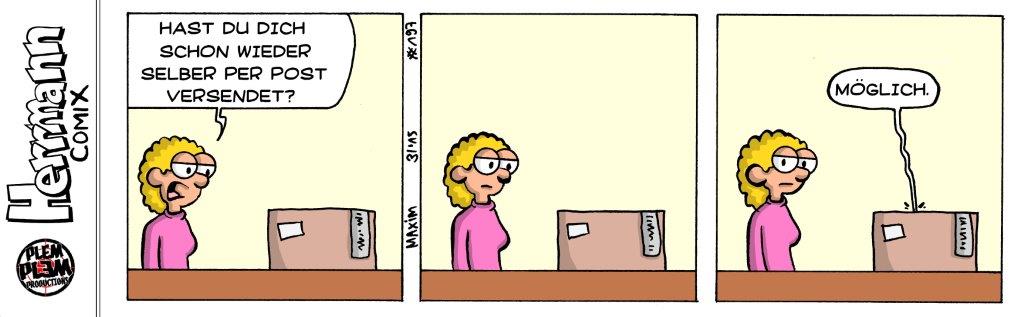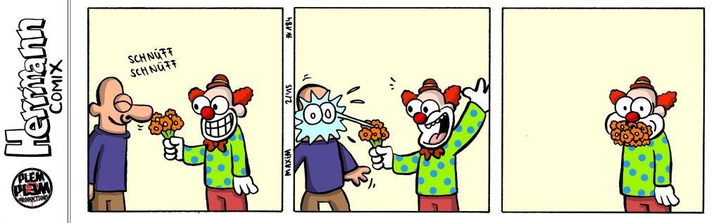 Stimmt, ich probiere, Herrmann nicht allzu zynisch zu halten. Klar, manchmal ist ein Strip auch makaber und schwarzhumorig, aber das ist eher die Ausnahme.