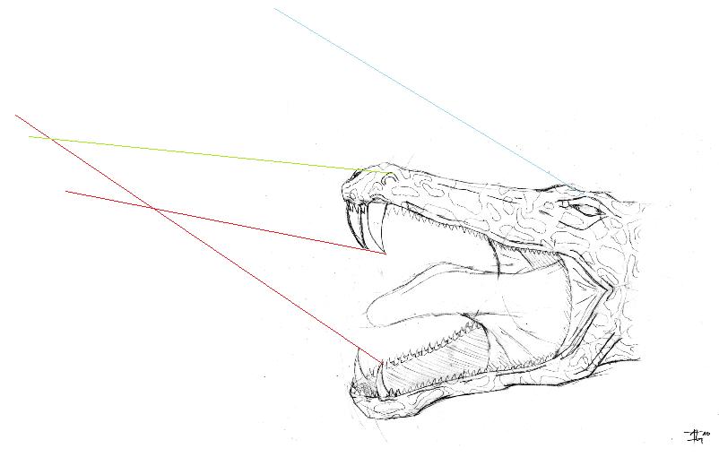 Ich glaube, was honey-chan mit der Zunge meint, liegt eifach daran, dass du verschiedene Fluchtpunkte für eigentlich parallele Sachen verwendet hast. Das Bändchen mit dem die Zunge am Unterkiefer festgewachsen ist, sieht dadurch nicht danach aus, als wäre es in der Mitte des Unterkiefers festgewachsen.