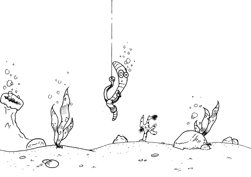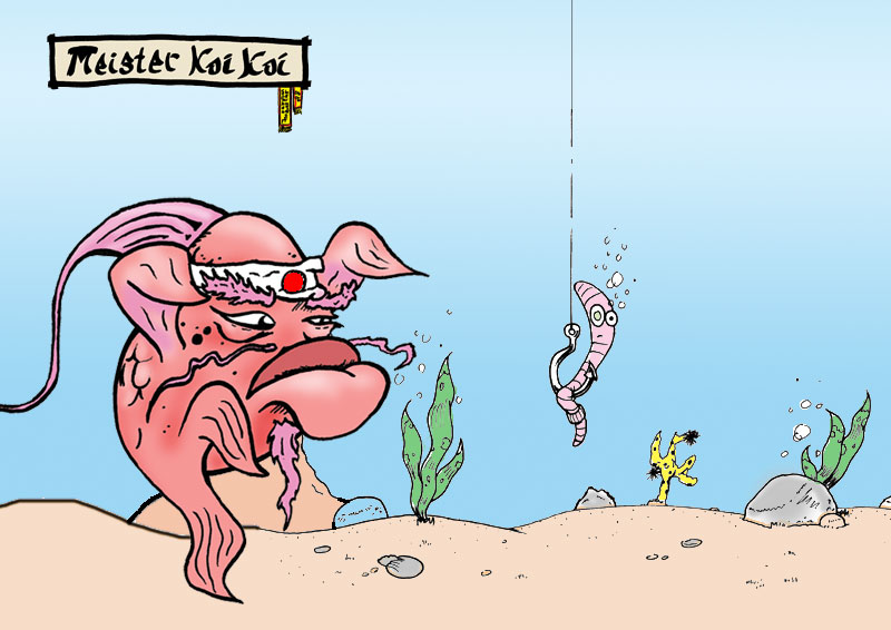Wie wärs denn damit: Meister Koi Koi will Deinem Fisch das Kämpfen mit dem Wurm beibringen - so in Kill Bill manier.