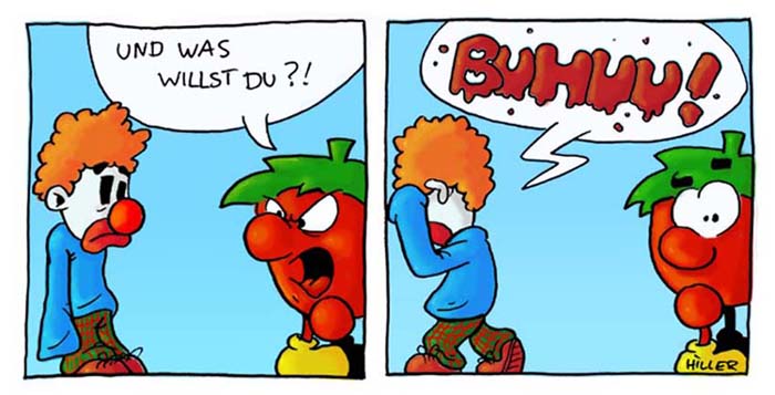 Genug der Bescheidenheiten, hier kommen die ersten beiden Cartoons: