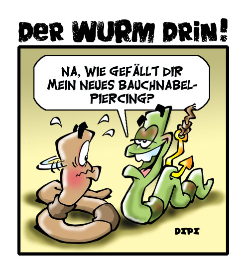 Hi, Leute nachdem ihr mir Mut gemacht habt, auch mal meine Würmer vorzustellen, möchte ich dies sehr gerne tun. Es handelt sich hierbei um einen Toon aus meiner Serie "DER WURM DRIN!", den ich in Anbetracht eines von Neve geposteten Toons vorerst zurückstellen wollte. Jetzt poste ich ihn halt doch mal...