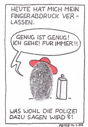 Hilfe! Mir fallen laufend Fingerabdruck-Witze ein!! Urg... Na ja, einen zeige ich euch noch, danach werdet ihr verschont - es reicht ja, wenn ich leide ;)