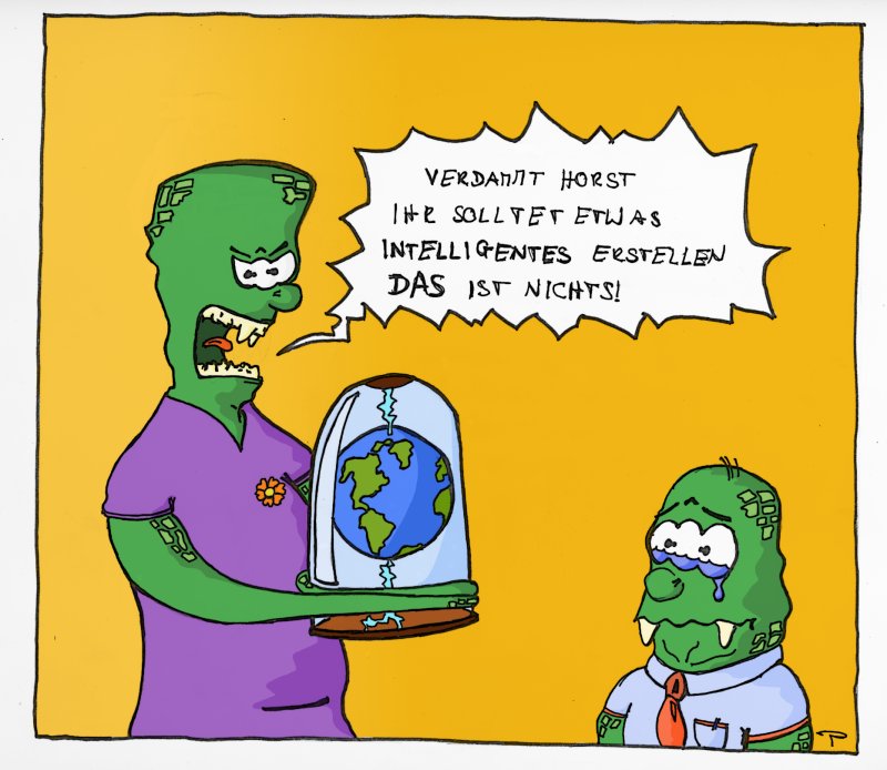Wie gesagt: Es ist mehr eine Karikatur als ein Cartoon, also nicht sehr auf *Lustig* ausgelegt, mehr auf *Kritisierend*. Von daher sei es dir gestattet, den Gag nicht lustig zu finden :D