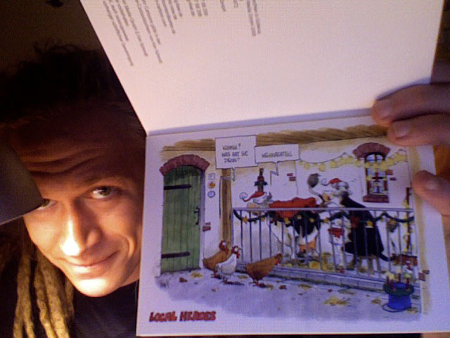 Hi Fuchsi, danke fürs Interesse! Ganz Geschäftsmann kann ich da mein weiteres neues Werk empfehlen: "Weihnachten in Güllerup": 10 Weihnachtspostkarten, sämtlich farbig, Format 11,5 X 16,2 cm, kost´4,95 und gibts im Buchhandel oder hier: http://comic-now.de/advanced_search_resu…nbuch&x=16&y=10 :D Da ist unter anderem auch der betreffende Cartoon drin.