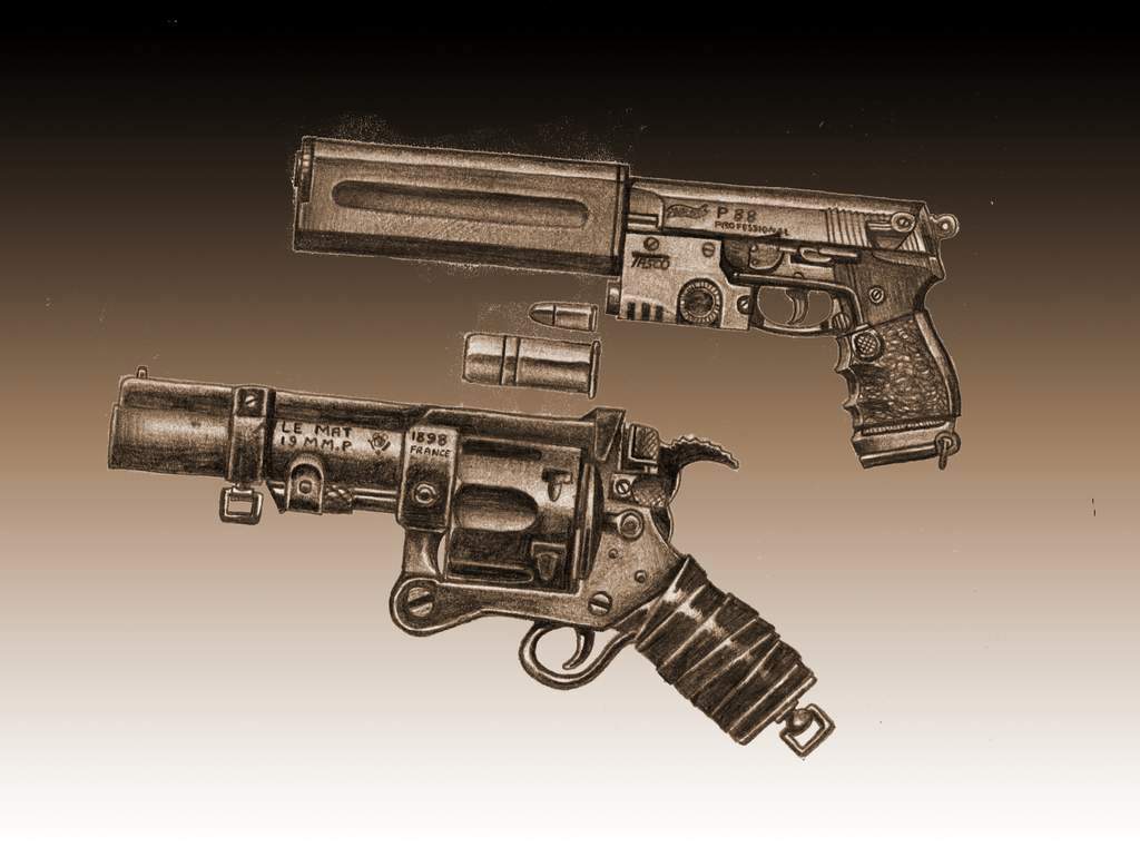 Sorry - ich bin´s noch mal: Kommen wir zu Feuerwaffen. Auch hier gibt es Unterschiede - allerdings eines vorweg: Will man (wie in den meisten Mangas) die Waffen so zeichnen, daß der Betrachter ihnen abnimmt, daß sie wie vorgesehen funktionieren, sollte man sich etwas damit beschäftigen.