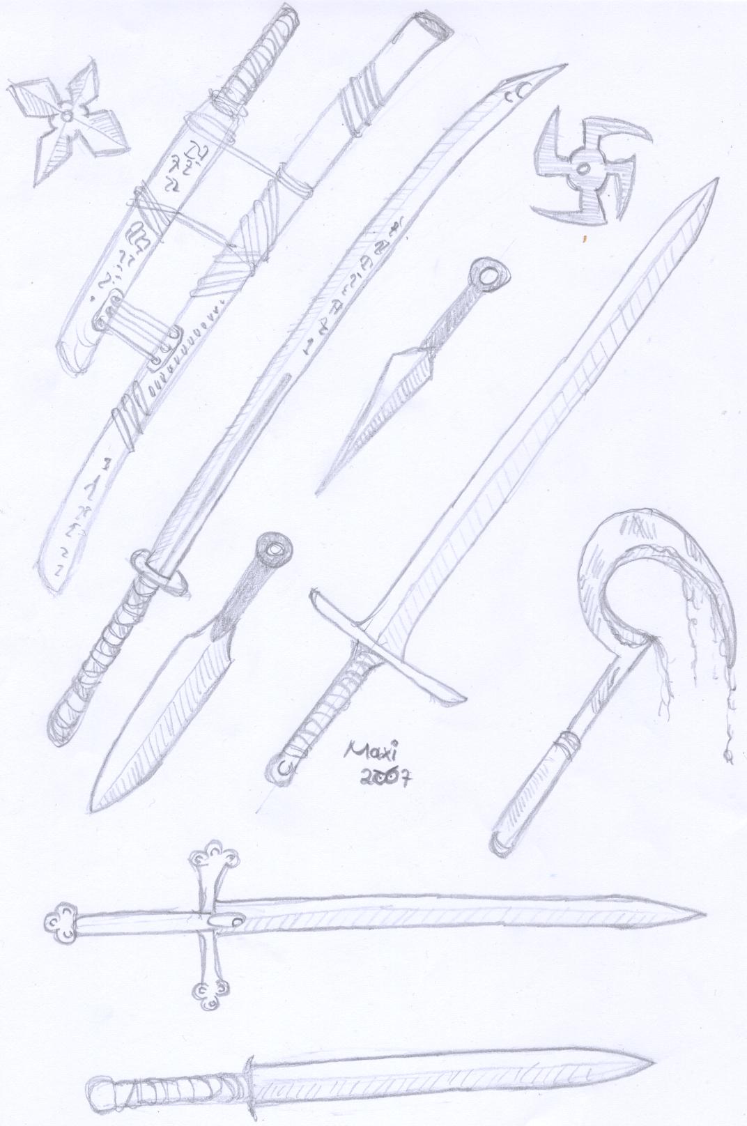 Hier zu Klingenwaffen ein paar Skizzen zu Waffen, die ich mal gefertigt habe: