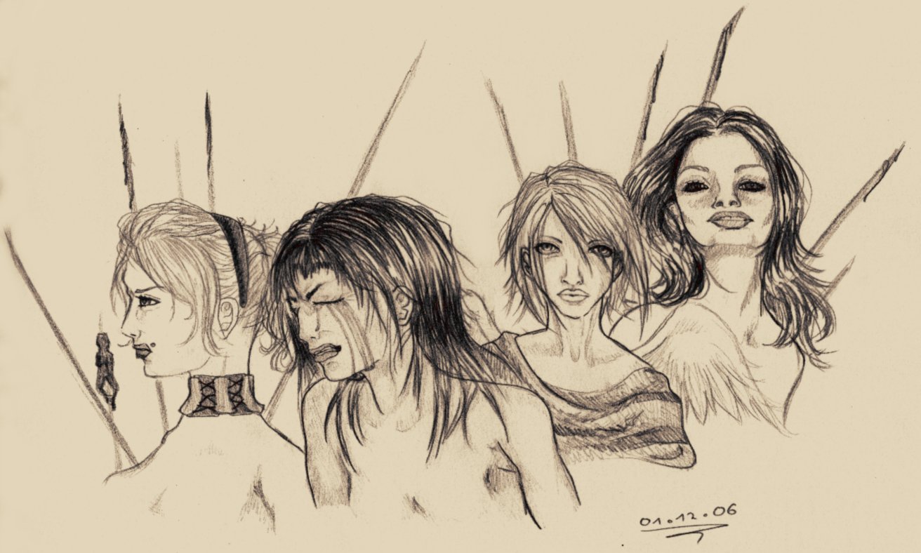 "Wenn ich mir das Bild mit den 4 Frauengesichtern anseh und das rechte (das du aus einer Zeitschrift übernommen hast) mit den anderen vergleiche, würd ich Sagen du solltest lieber alles aus dem Kopf herraus Zeichnen (is nich böß gemeint). Die anderen 3 gefallen mir nämlich wesentlich besser!"