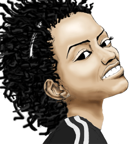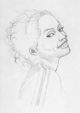Außerordentlich gut. Der Blick und das Lächeln kommen super rüber. Bin mir nicht so ganz sicher, ob es mir gefällt, dass die Haare nur aussen angedeutet sind und innen nur eine große weisse Fläche. Da muss ich nochmal drüber nachdenken.