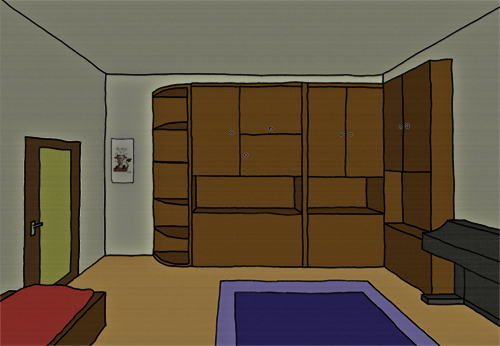 *zimmerbild anseh'n* man tue ma was richtig perspektivisches, diese eistellungen a-la southpark sind doch langweilig,dramatik und dynamik müssen im hintergrund spürbar sein ;)
