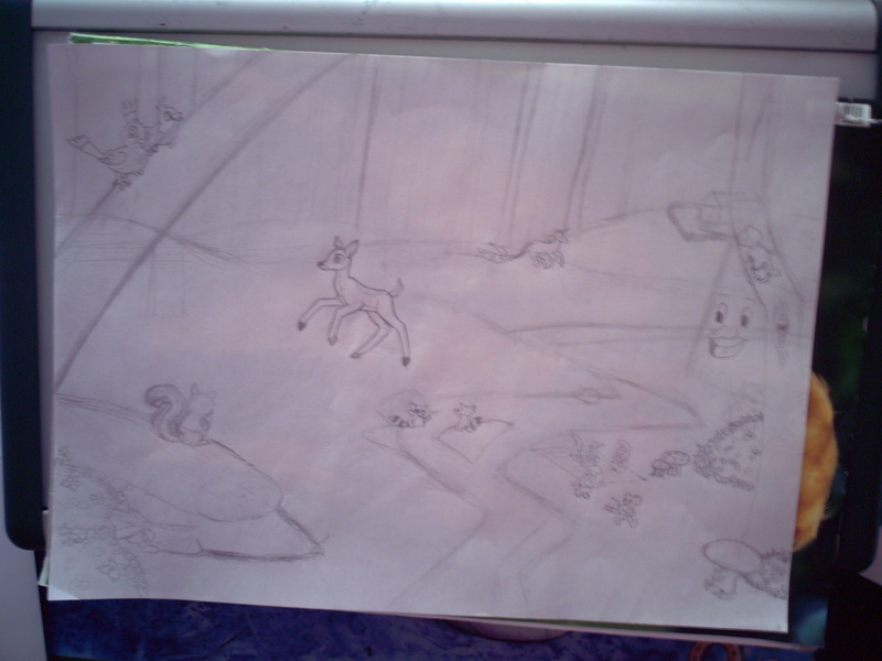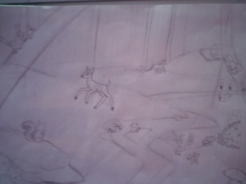 @ Herge: Vorlagen? Jain. Ich habe das alles aus dem Kopf raus gezeichnet, aber zum Beispiel das Reh hatte ich vorher schonman abgezeichnet gehabt. Für Bewegungsstudien, und da hab ich das jetzt so oft gemacht, dass ich die Figur auswenig kann. :D