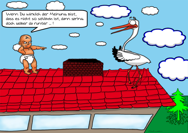 Zeichnerisch muss man auch nicht so viel daran feilen. Vllt. wirkt alles statisch aber deine Original-Pointe fordert nun mal auch nicht heraus, dass die Protagonisten im Eck herumspringen müssen.