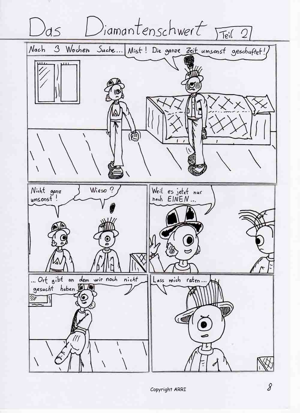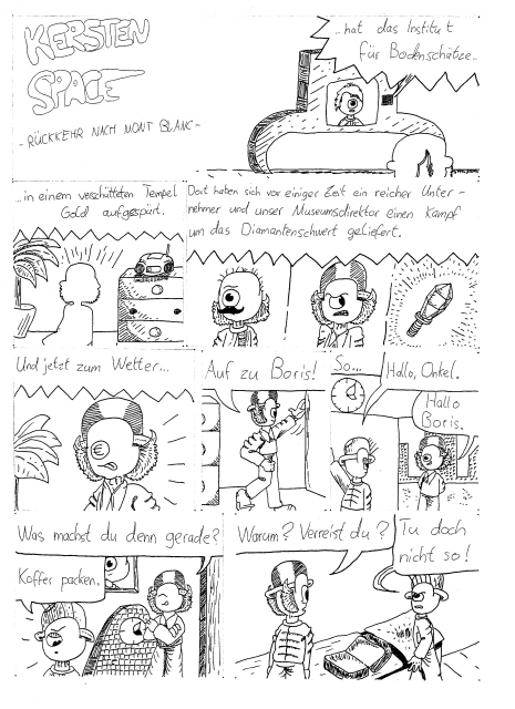 Und hier ein neuer Comic ( die erste Seite ) "Rückkehr nach Mont Blanc"Die Fortsetzungsgeschichte von "Das Diamantenschwert" ( auch schon auf dieser Seite gezeigt )